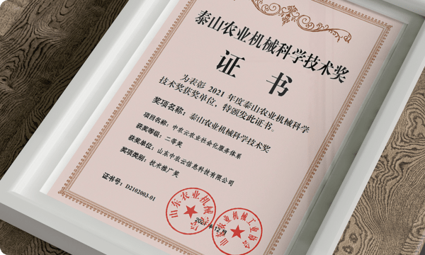2021年,中農云農業社會化服務體系獲得“泰山農業機械科學技術”-技術推廣二等獎。
