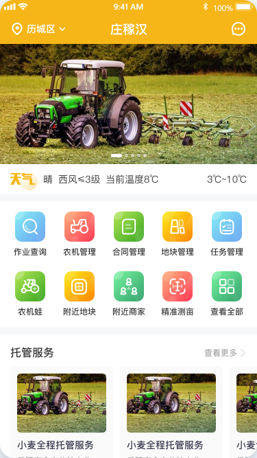 莊稼漢APP的首頁,整體展示了該APP的各種功能。